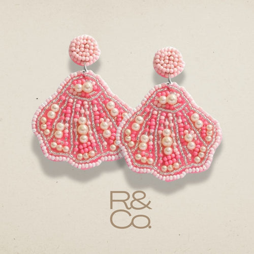 Pink Palm Beaded Drop earrings [pink/cream/gold]