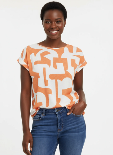 • Rune Abstract Print Boxy Blouse [coral/white] XLARGE