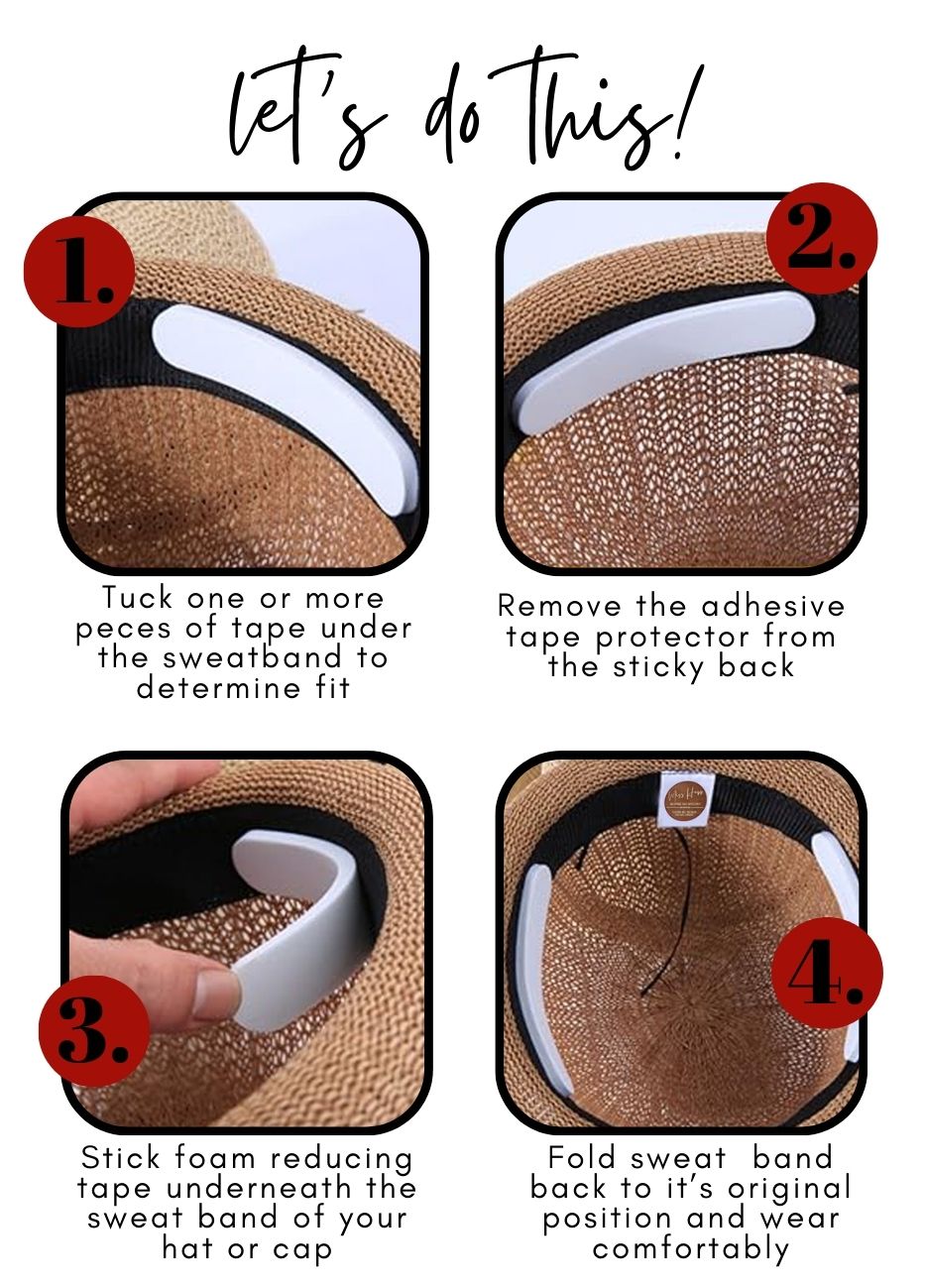 Foam hat size reducer tape strips (x2) Sometimes the crown slips, darling. That’s why we keep a little secret up our sleeve: Hat Size Reducers. Two nifty strips in a neat little pack that make any hat fit like it was made just for you.