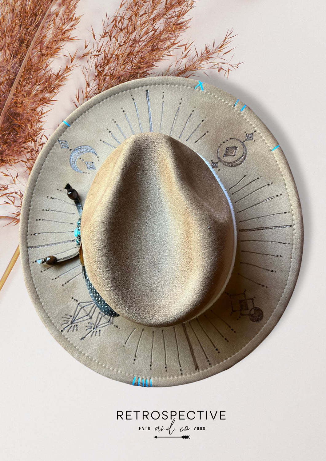 Aged Alchemy themed tan fedora. Hand-drawn, slow fashion at it's best. Just perfect for your whimsical soul.