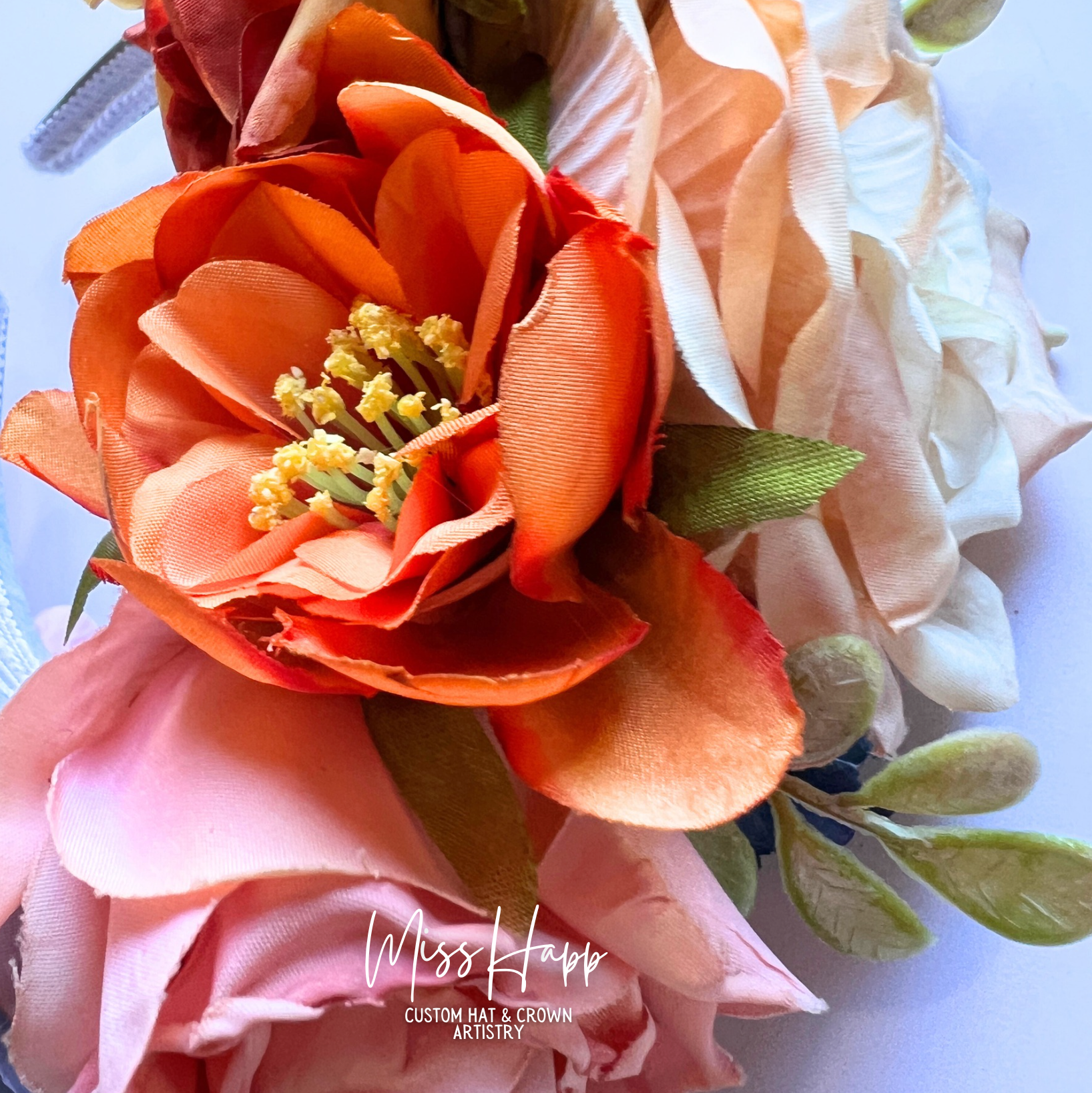 Make a statement! Large Hand Made flower crown with large life like! This is a one off item. This crown sits on a wide alice band.